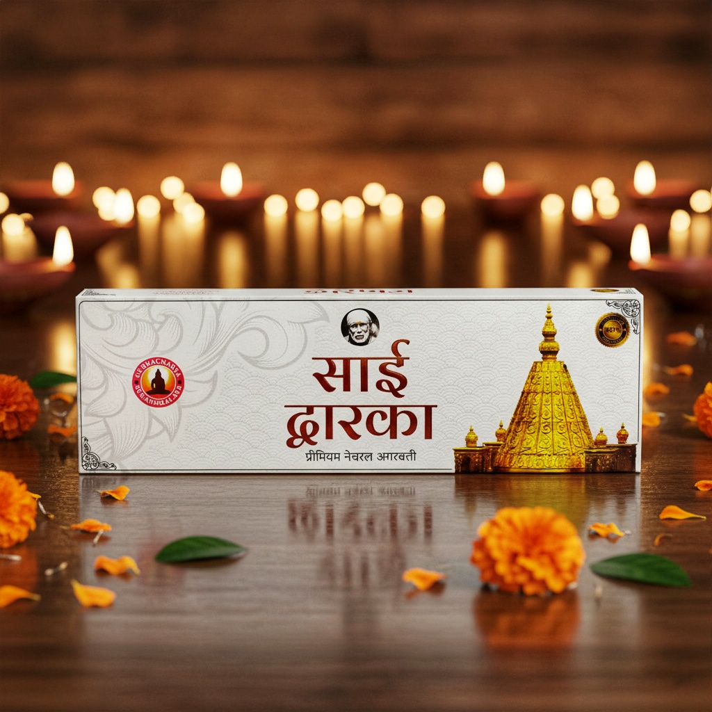 Sai Dwaraka Premium Agarbatti is a pure and divine incence stick made with traditional care and natural ingredients. Crafted using a cow dung base, it is fully organic, charcoal-free, and safe for everyday use. With a burning time of nearly 1 hour 20 minutes, each stick spreads a calming and refreshing fragrance that creates peace in your home, temple , or meditation space.