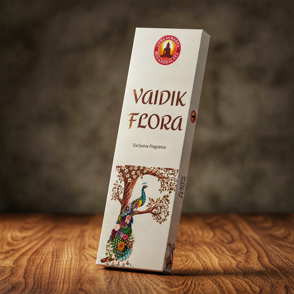 Vaidik Flora Premium Agarbatti is a pure and natural incense stick created to bring peace, devotion, and freshness into your life. Made with a cow dung base, it is fully organic, completely charcoal-free, and safe for your health and the environment.Each stick has a long burning time of nearly 1 hour 20 minutes, giving a steady flow of soothing fragrance for prayers, meditation, and daily rituals.